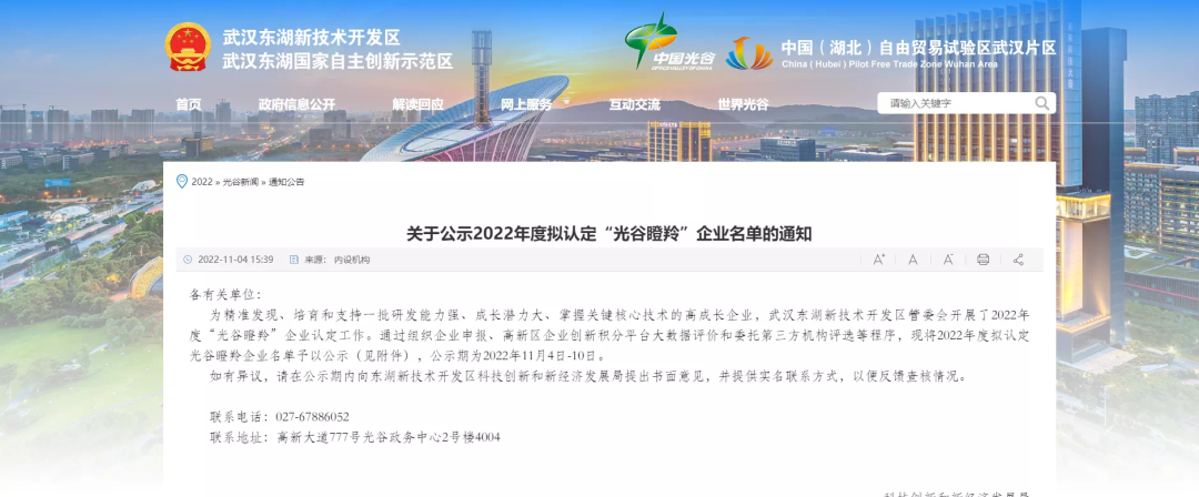 11月4日東湖新技術開發(fā)區(qū)科技創(chuàng)新和新經(jīng)濟發(fā)展局發(fā)布了《關于公示2022年度擬認定光谷瞪羚企業(yè)名單的通知》,武漢敢為科技有限公司成功獲評2022年度光谷瞪羚企業(yè),這也是敢為科技連續(xù)四年獲得此榮譽。