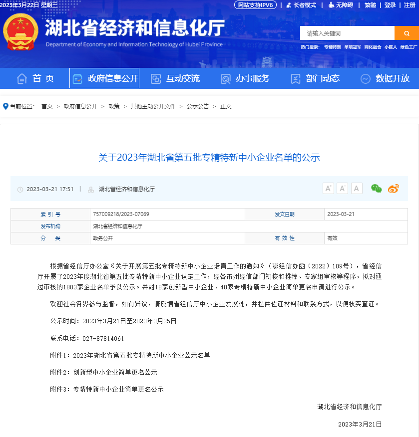 重大喜訊!3月21日,在湖北省經(jīng)濟(jì)和信息化廳公示的《湖北省第五批專精特新中小企業(yè)名單》中,敢為科技榜上有名。本次入選是政府與行業(yè)主管部門對(duì)敢為科技的科技創(chuàng)新、成果轉(zhuǎn)化、行業(yè)專業(yè)水平等綜合實(shí)力的充分認(rèn)可!