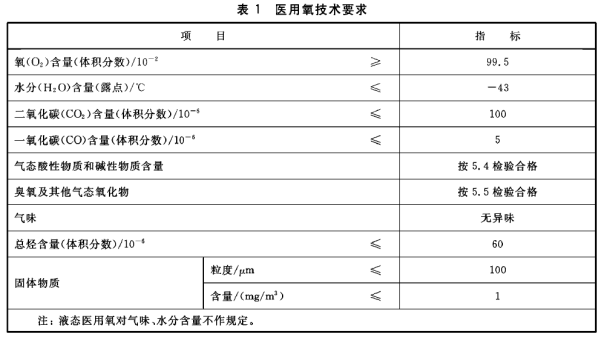 ● 醫(yī)用氧的技術要求應符合表1的規(guī)定。