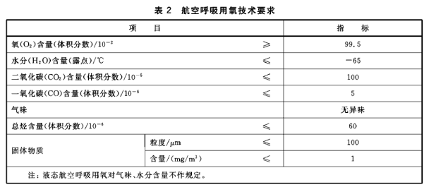 ● 航空呼吸用氧的技術要求應符合表2的規(guī)定。