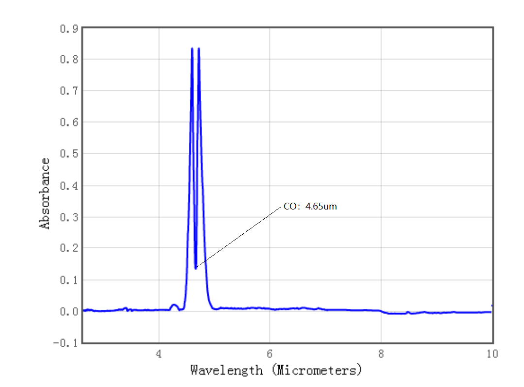 分析儀內部安裝了兩只紅外氣體傳感器分別進行一氧化碳和二氧化碳的檢測,二氧化碳的吸收峰4.26um,一氧化碳的吸收峰4.65um,由于二者之間有一定的吸收重合,我們通過算法區(qū)分講兩者之前的交叉干擾做到最低。