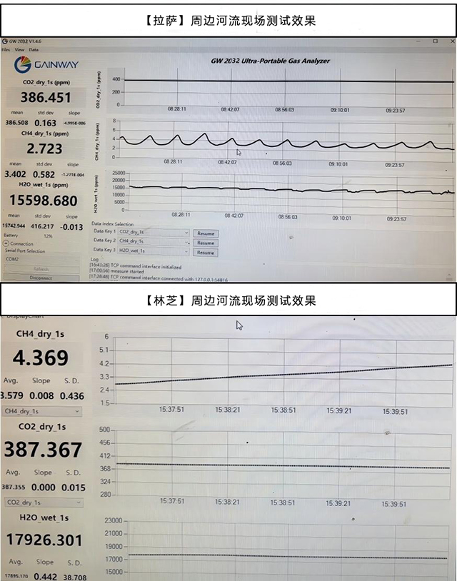 在2025年夏季和秋季,我們測試地點選擇了拉薩、林芝周邊河流進(jìn)行了便攜式溫室氣體分析儀性能和水-氣界面溫室氣體通量測試。